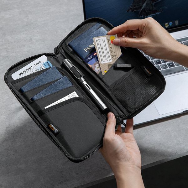 کیف پاسپورت Navigator-T03 از برند تام تاک، همراهی ایدهآل برای مسافران و خانوادههایی است که به دنبال امنیت، سازماندهی و سبک مدرن هستند. این کیف با قابلیت نگهداری 4 پاسپورت، 4 کارت اعتباری، بلیتها، پول نقد، سکه، خودکار و جایگاه مخفی برای AirTag، تمامی نیازهای سفر شما را پوشش میدهد. تکنولوژی RFID تعبیهشده در آن، اطلاعات شخصی شما را از اسکنهای غیرمجاز محافظت میکند. همچنین، با داشتن جایگاه مخصوص سیمکارت و پین خروج، تعویض سیمکارت در سفرهای بینالمللی را آسان میسازد. جیب پشتی با دسترسی سریع برای مدارک و بند مچی برای حمل راحتتر، از دیگر ویژگیهای برجسته این کیف هستند. ساختهشده از نایلون 840D Cordura Ballistic و زیپ ضدآب، این کیف دوام و محافظت بالا را در برابر شرایط مختلف جوی تضمین میکند.