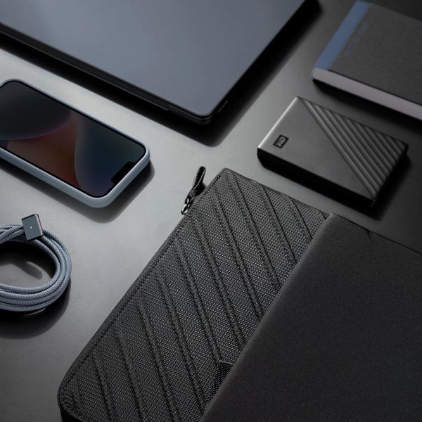 کاور لپتاپ tomtoc Voyage-A10 مخصوص مک بوک پرو 14 اینچ , ترکیبی از مینیمالیسم شیک و محافظت جدی است؛ بدنهی ساختهشده از نایلون بادوام و آبگریز Cordura 420D با خطوط مورب 45 درجه ظاهر مدرن و تمیزی به محصول میدهد و لایهی داخلی با آستر میکروفایبر و بالشتکهای Memory Foam ضربهها و خطوخش را مهار میکند تا خیالتان از ایمنی دستگاه راحت باشد. طراحی باریک و سبک بدون اضافهکردن حجم، بههمراه دسترسی دوطرفه برای بازکردن سریع، استفادهی روزمره را دلپذیر میکند و جیب جلوییِ کاربردی هم جای مناسبی برای شارژر، پاوربانک یا ماوس فراهم میسازد. Voyage-A10 در اندازه متناسب با مکبوک پرو 14 اینچ عرضه میشود و انتخابی ایدهآل برای کسانی است که میخواهند در رفتوآمد شهری یا سفر، از لپتاپ خود با استایلی ساده و حرفهای محافظت کنند.